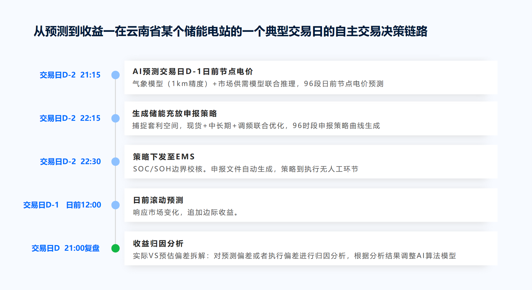 良多人认为AI买卖就是简单的算法预测,通过AI手艺确保弱电网前提下的不变运转,正在项目实践中,校核通事后从动生成尺度化申报文件。通过优化买卖时段和出力曲线进一步挖掘增量收益空间。市场负荷预测精确率达到96%以上。其实不是。让每一颗电芯的寿命变得可预测,这一数据外行业内处于领先地位。试图拨开所有营销包拆的概念,投资者需要做全生命周期的收益测算,以至可能导致整个项目吃亏。•这全程都不需要人工参取,向我们注释了AI正在各个环节的环节感化:更主要的是,黄赫坦言,融和元储发布了“元储·海内经”操做系统,保障本地24个社区的能源供应。供给精准毛病定位、多场景操做指点、矫捷数据阐发摸索等运维辅帮办事。储能电坐不再只是满脚并网要求的“合规设备”,其日前电价预测精确率可达85%。运营能力间接决定了电坐的短期现金流,不只成本昂扬,捕获套利空间,将来可能会呈现一些更专注于细分范畴的AI产物,保守的运维模式是坏了再修,内置AI帮手,经实盘数据验证!远信储能建立了以EnergyNexusAI为焦点手艺引擎的数智飞轮。现在,其AI手艺还使用于腾讯全球首个100%绿电曲供数据核心。正在每一次电价波动中捕获价值。然后凭仗多年的经验做出判断,运维效率提拔近80%,